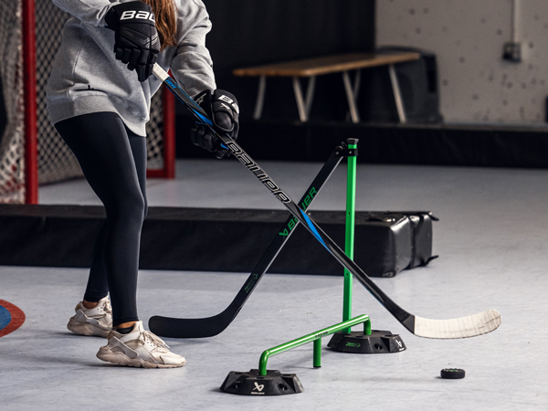 DRYLAND TILE PUCK には、パックの両側に 12 個のプラスチック グライダーが付いており、氷上でのパックの反応を模倣します。