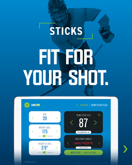 バウアーのゲームフィットセンターによって自分に合ったをスティックを導き出してくれます!