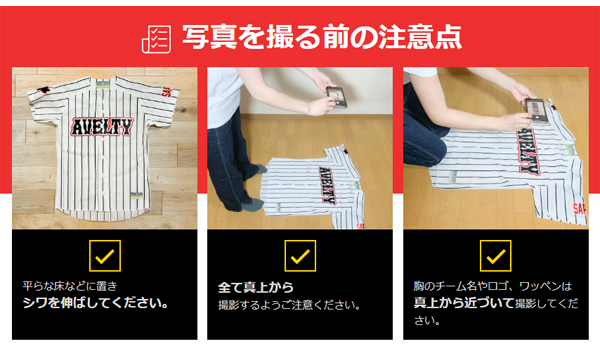 現在のユニフォーム写真をメールで添付頂きます。