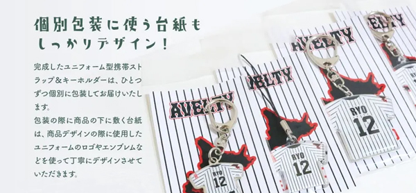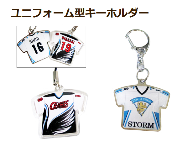 チームのユニフォームが携帯ストラップや、キーホルダーに変身!