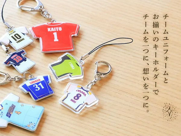チーム単位で、大会記念や卒業記念に最適なユニフォームキーホルダー!